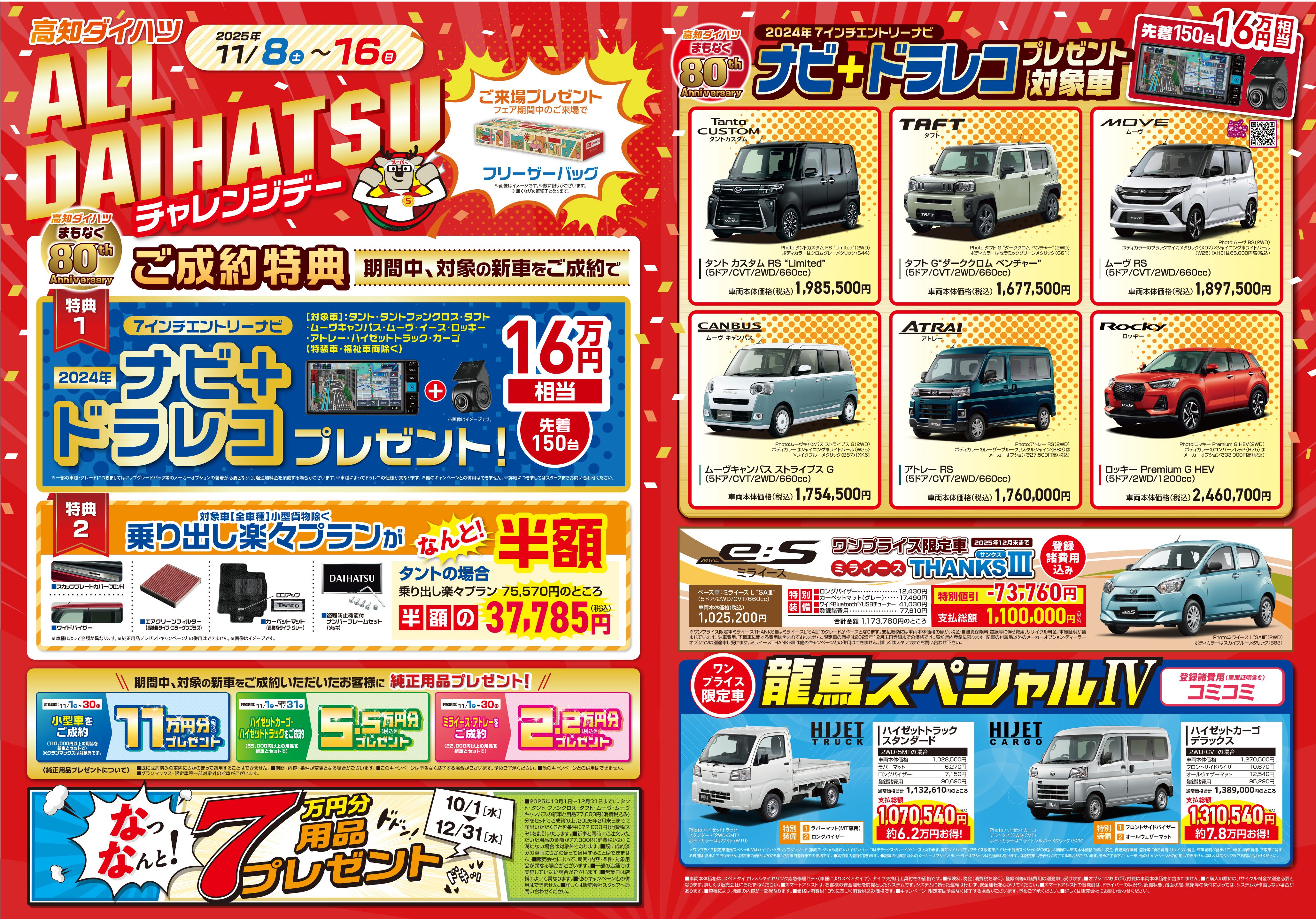 ダイハツ高知南 高知市萩町 TEL:088-831-8580 8日~9日・14日~16日 開催