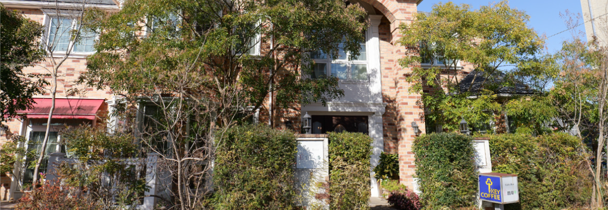 グリーンが印象的なカフェ