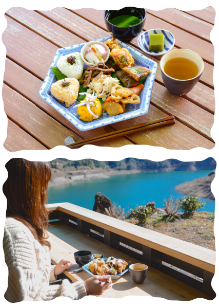 眼下には仁淀川が流れる人気のテラス席で、絶景とここでしか味わえない料理を心ゆくまで堪能してみて♪