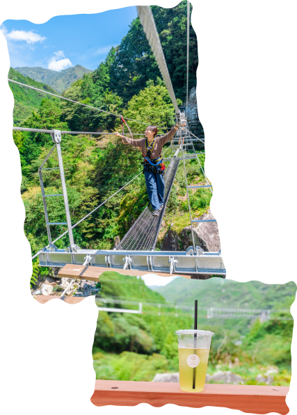 渓谷美を眺めながら、スリル満点の空中散歩を楽しんだあとは、セットで付いてくる「沢渡茶」で気分はさらに爽快に♪