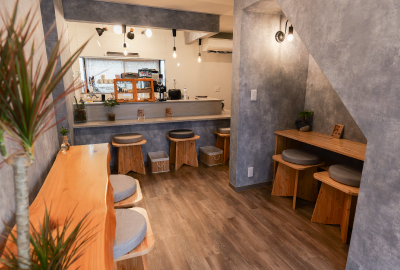 「時間を忘れて、ゆっくり過ごしてほしい」そんな想いが込められた店内には、手づくりの机や椅子、観葉植物が並び、まるで癒しの隠れ家のような空間。