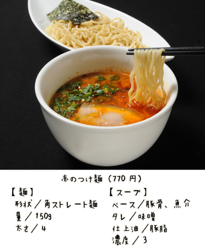 中でも、ラー油と唐辛子の粉を効かせた味噌ベースの「赤のつけ麺」は、弾ける辛さに夢中になる人続出!
